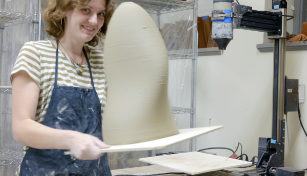 The Digital Ceramics Lab is open to all students who wish to experiment with digital and material fabrication, and welcomes workshops and tours from other disciplines. Students who wish to try out the lab can explore open lab hours and book a training session on the Newcomb Art Department website.