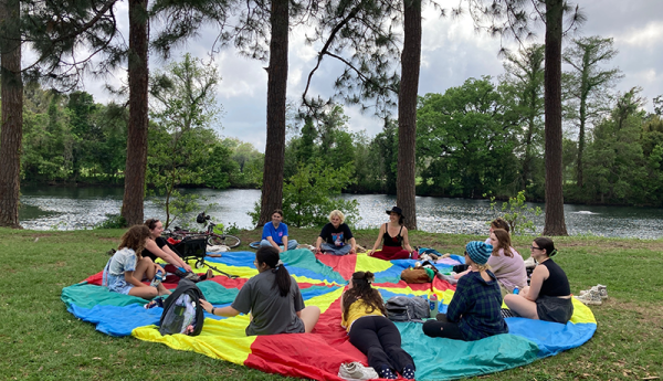 For me, that was my passion for the circus arts. There was one day in which we decided to take advantage of the beautiful New Orleans weather and have class outside. I decided to bring a bag full of juggling balls, hula-hoops, scarves, and so much more. The class was able to learn my “thing” and experiment on their own with recess-inspired play. Though it may seem pointless, Professor Gardiner made it clear that with every experience in our class came meaning. This “thing” taught me how to approach container facilitation and enhanced my experience teaching through creative means. This concept of significance through play became a foundational aspect of the class.